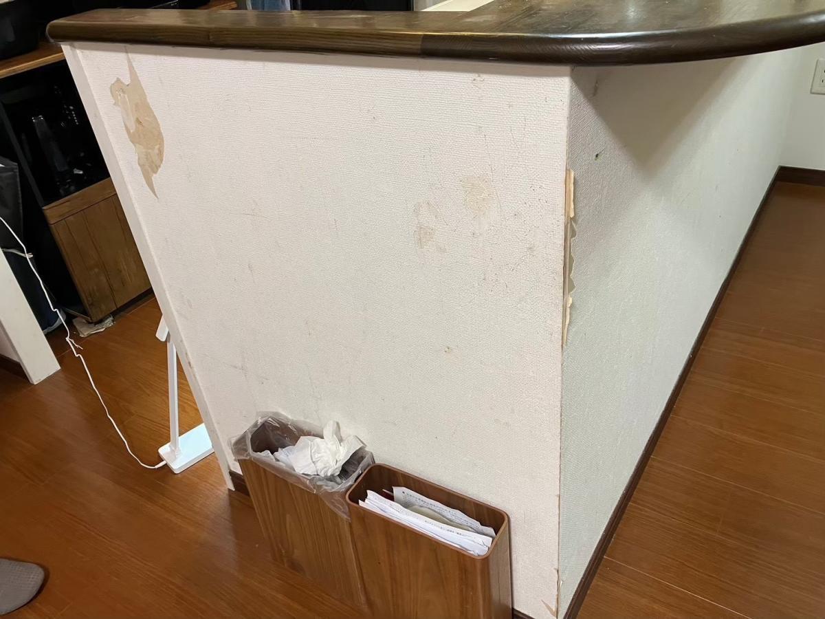 2026年1月施工 工事後:LDKのフローリングリフォームと、キッチン カウンターのクロス貼替え後です。 空間全体を引き締める、上質でシャープなクロスと フローリングの色味をお選びいただきました。